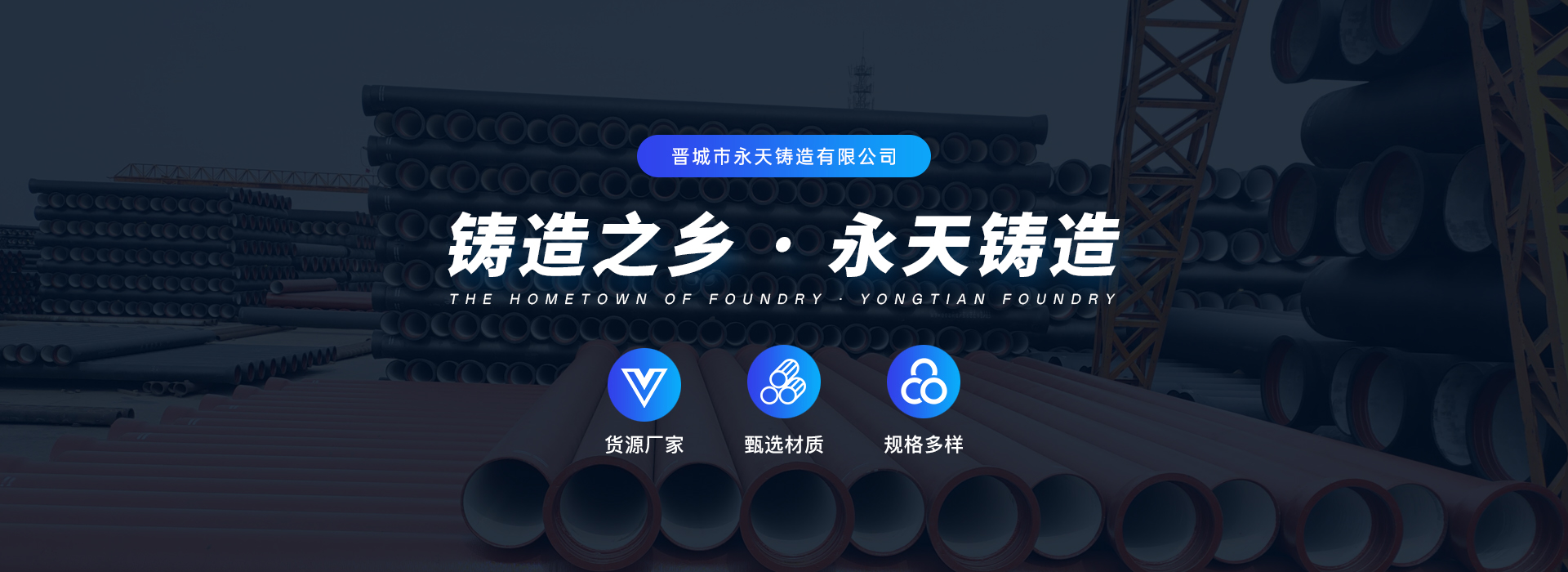 晋城市永天铸造有限公司位于全国闻名的“铸造之乡”——山西省晋城市,本厂主要经销球墨铸铁管、球墨铸铁管件、球墨铸铁井盖。厂区距火车站6公里,产品可运输至全国各地用户,产品不仅可用于城镇天然气和煤气的承压输配地下管网,还可广泛用于输水、输油、管道以及食品、制药、化工等行业的生产流程管网,可满足各类用户的需求。